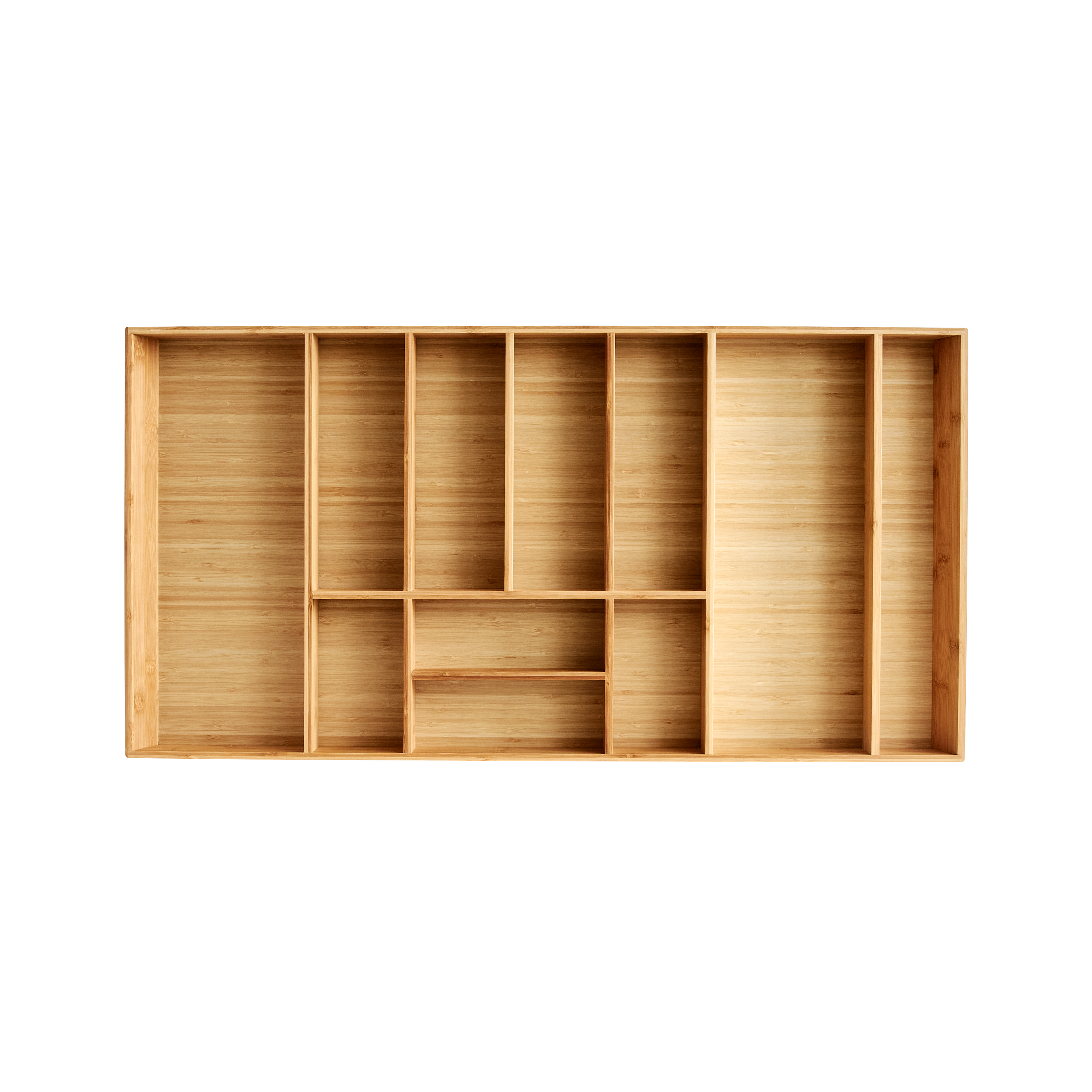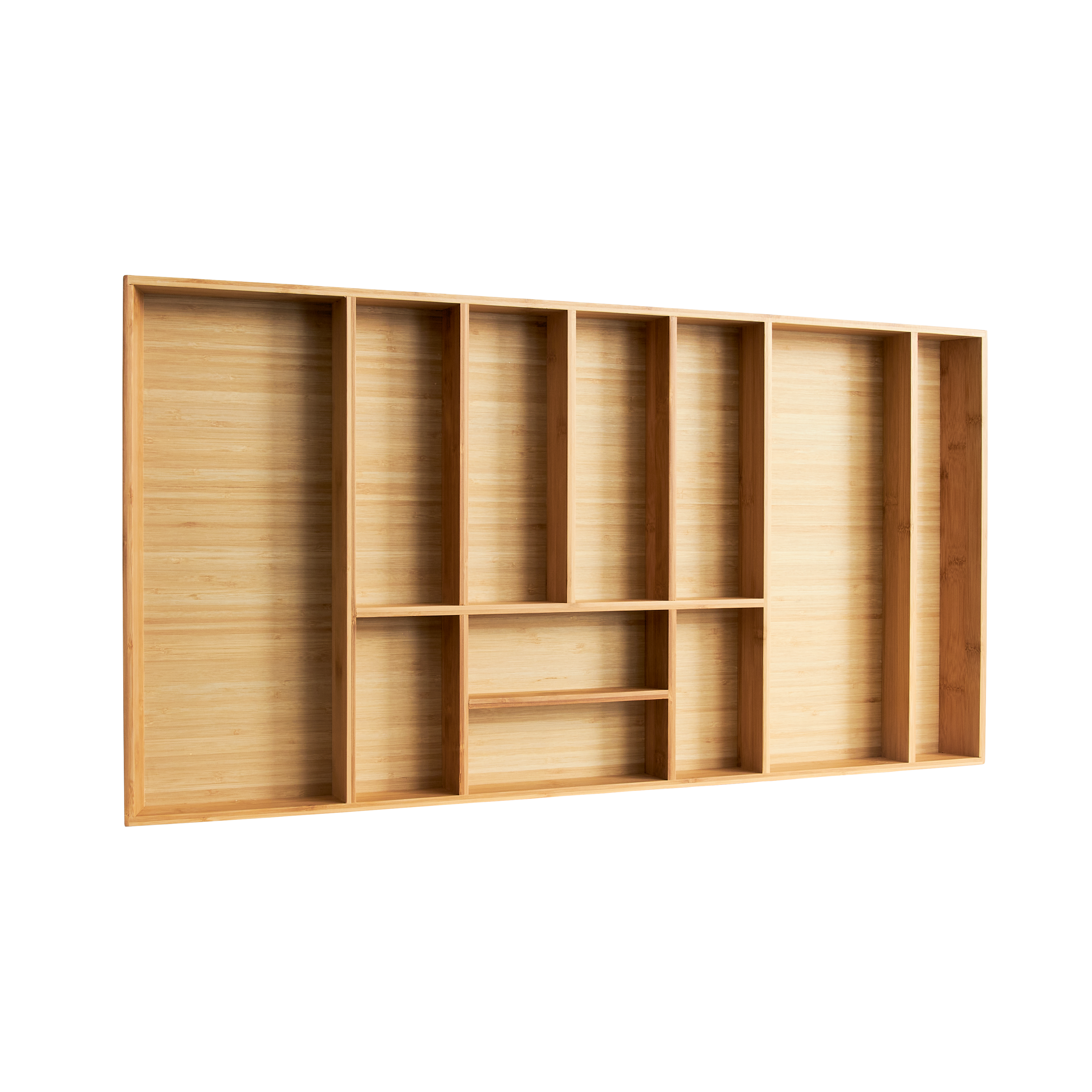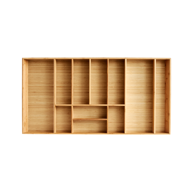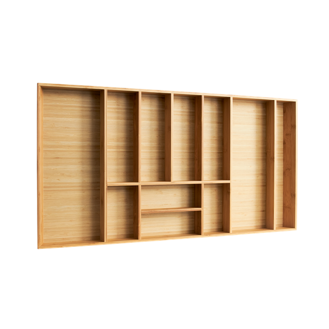 Bambuinen aterinlaatikkomme erottuu edukseen kauniilla muotoilullaan ja käytännöllisyydellään. Sen monipuoliset lokerot tarjoavat täydellisen säilytysratkaisun, joka sopii erinomaisesti keittiöön. Laatikko on suunniteltu sopimaan laatikoihin, joiden leveys on 40 cm ja jopa 120 cm, joten se on erittäin joustava ratkaisu erilaisiin keittiötiloihin.