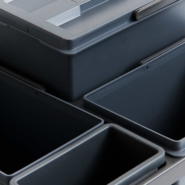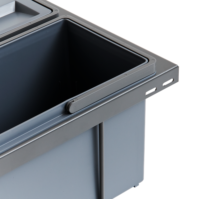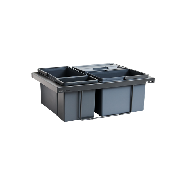 - Käytännöllinen jakautuminen: Järjestelmässä on useita lokeroita, jotka helpottavat jätteiden lajittelua ja pitävät keittiön siistinä.