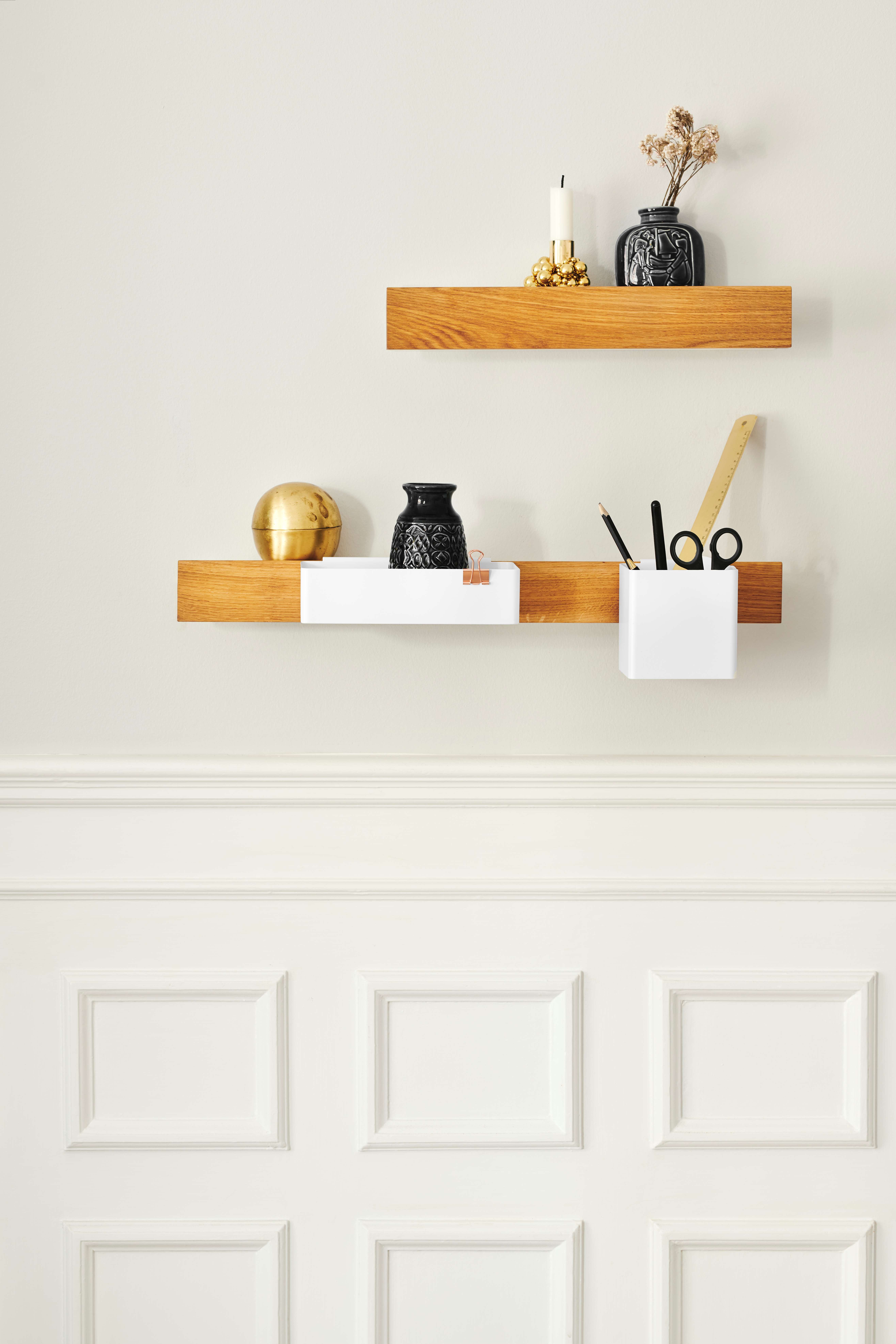 Flex magneettihylly 40 tammi/valkoinen on ihanteellinen kapeaan eteiseen, tärkeimmille toimistotarvikkeille tai magneettiseksi veitsitelineeksi. Käytä hyllyjä yksittäin, jatkeena toisilleen tai porrastettuna luodaksesi oman ainutlaatuisen ilmeesi.