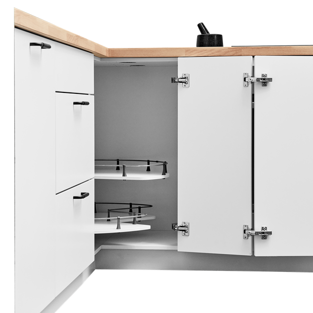 Carousel 3/4 -hylly erottuu edukseen käytännöllisyydellään ja tyylikkäällä valkoisella viimeistelyllään. Sen pyörivä mekanismi tekee kaapin sisällön tarkastelusta vaivatonta, mikä säästää aikaa ja vaivaa keittiössä. Tämä hylly on täydellinen ratkaisu kulmakaappeihin, joissa tila on usein haastavaa hyödyntää tehokkaasti. Hyllyn kestävä rakenne varmistaa, että se kestää päivittäistä käyttöä, ja sen tyylikäs ulkonäkö tuo modernia ilmettä keittiöösi. Olipa kyseessä sitten kattiloiden, ruokatarvikkeiden tai astioiden säilytys, Carousel 3/4 -hylly tekee arjesta sujuvampaa ja mukavampaa. Tutustu tuotteisiimme verkossa tai vieraile lähimmässä myymälässämme ja tuo tanskalaista eleganssia kotiisi yllättävän edulliseen hintaan.