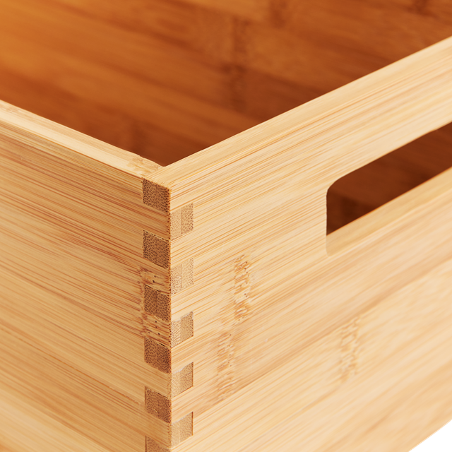 - Kestävä bamburakenne: Bambu on luonnostaan vahva materiaali, joka takaa laatikon pitkäikäisyyden ja tukevuuden.