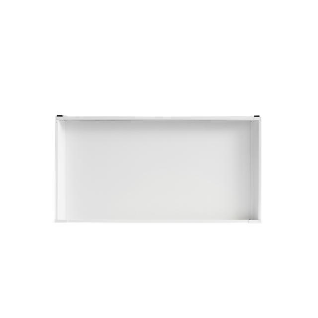 Interior tray -sisälaatikkomme erottuu edukseen valkoisen viimeistelynsä ja monipuolisen kokonsa ansiosta, tarjoten ihanteellisen ratkaisun tavaroiden säilytykseen tyylillä ja toimivuudella. Sen matala rakenne mahdollistaa laatikon piilottamisen oven taakse, luoden siistin ja yhtenäisen ilmeen keittiöön tai kylpyhuoneeseen.
